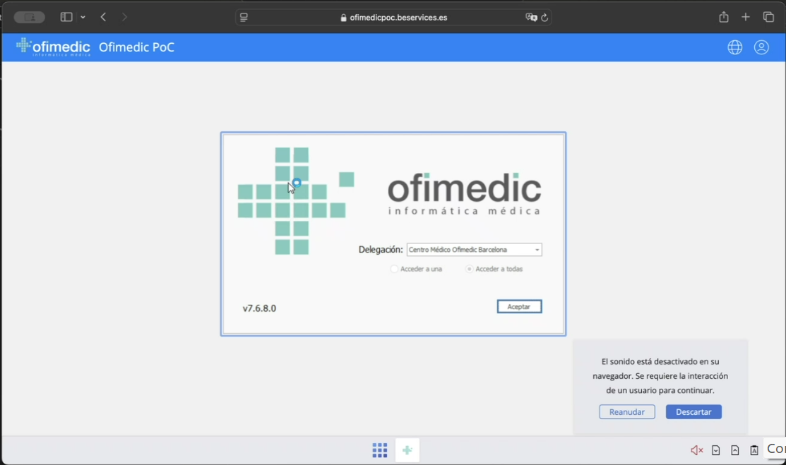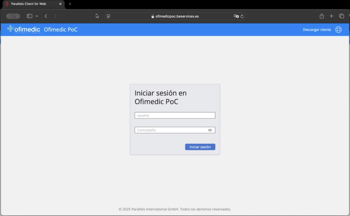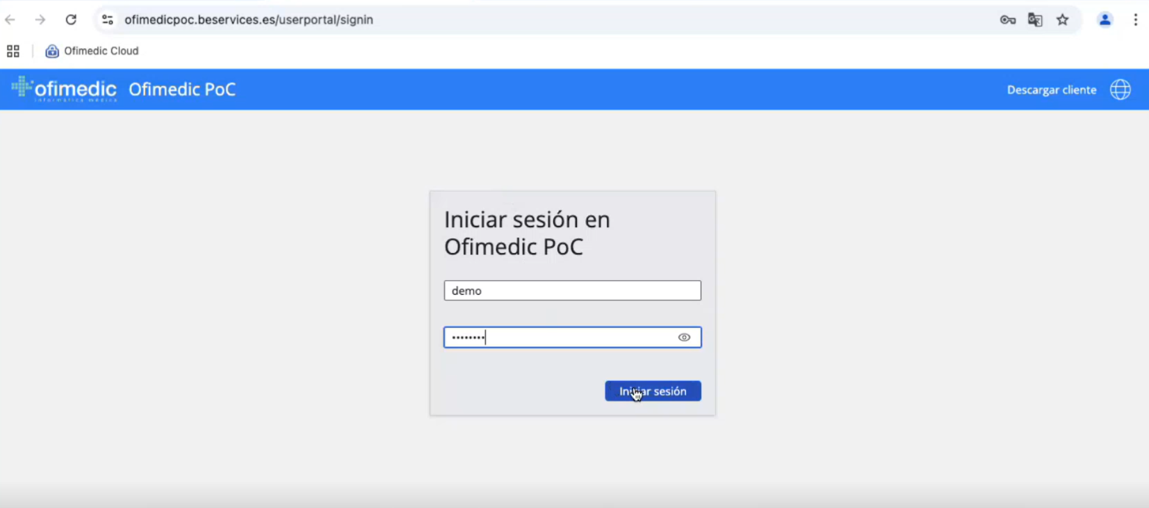 Accederemos a https://cloud.ofimedic.com con las credenciales de usuario de Ofimedic.