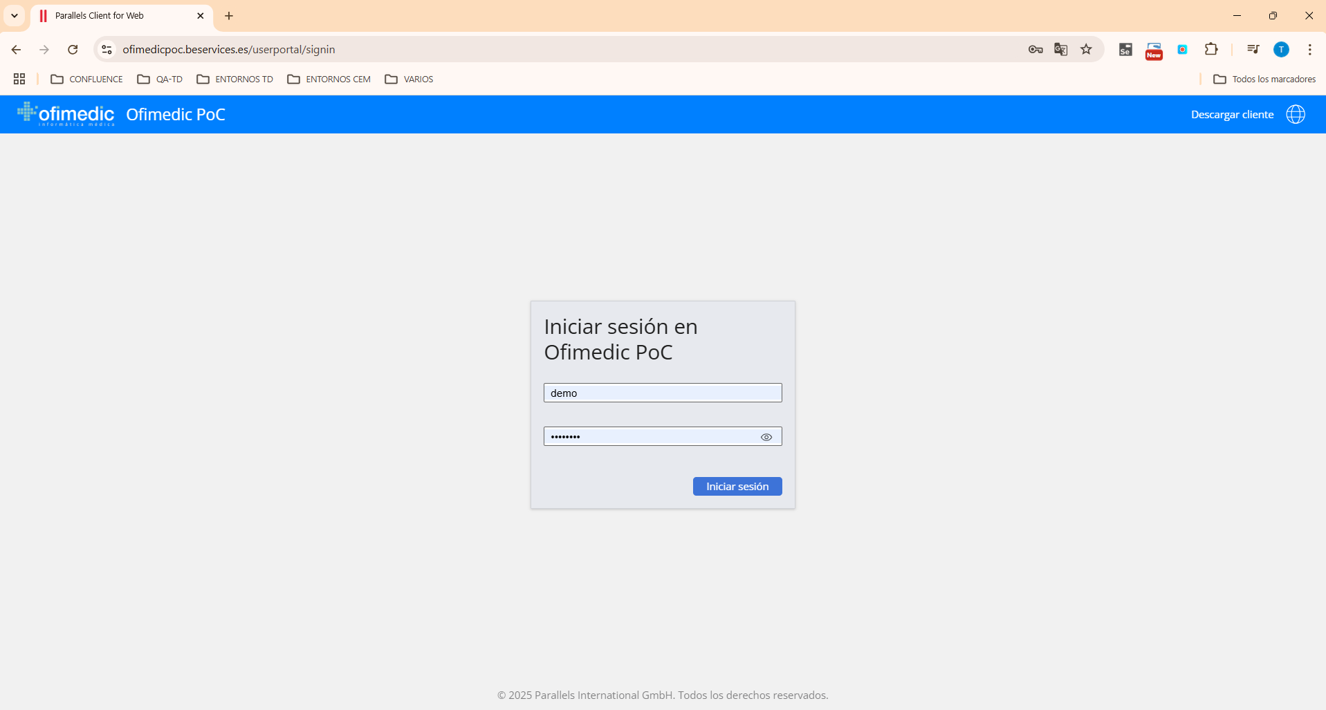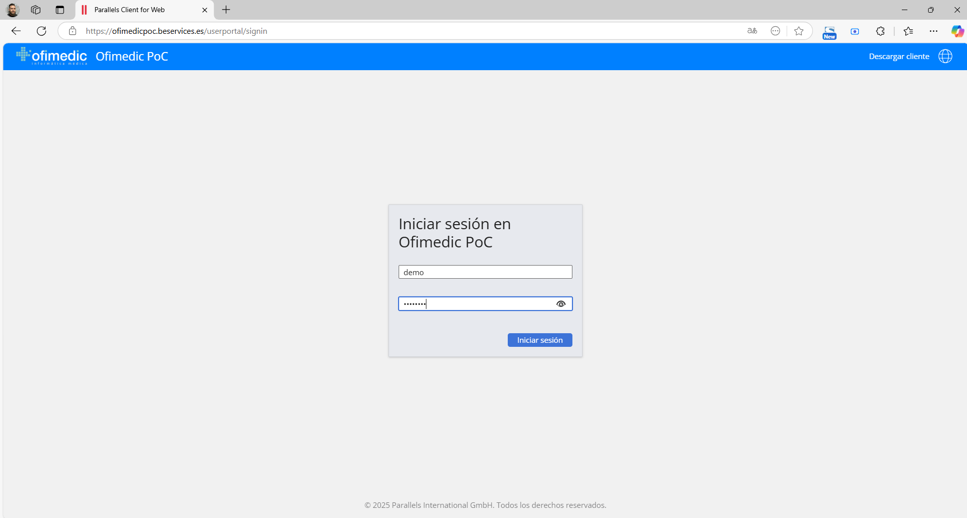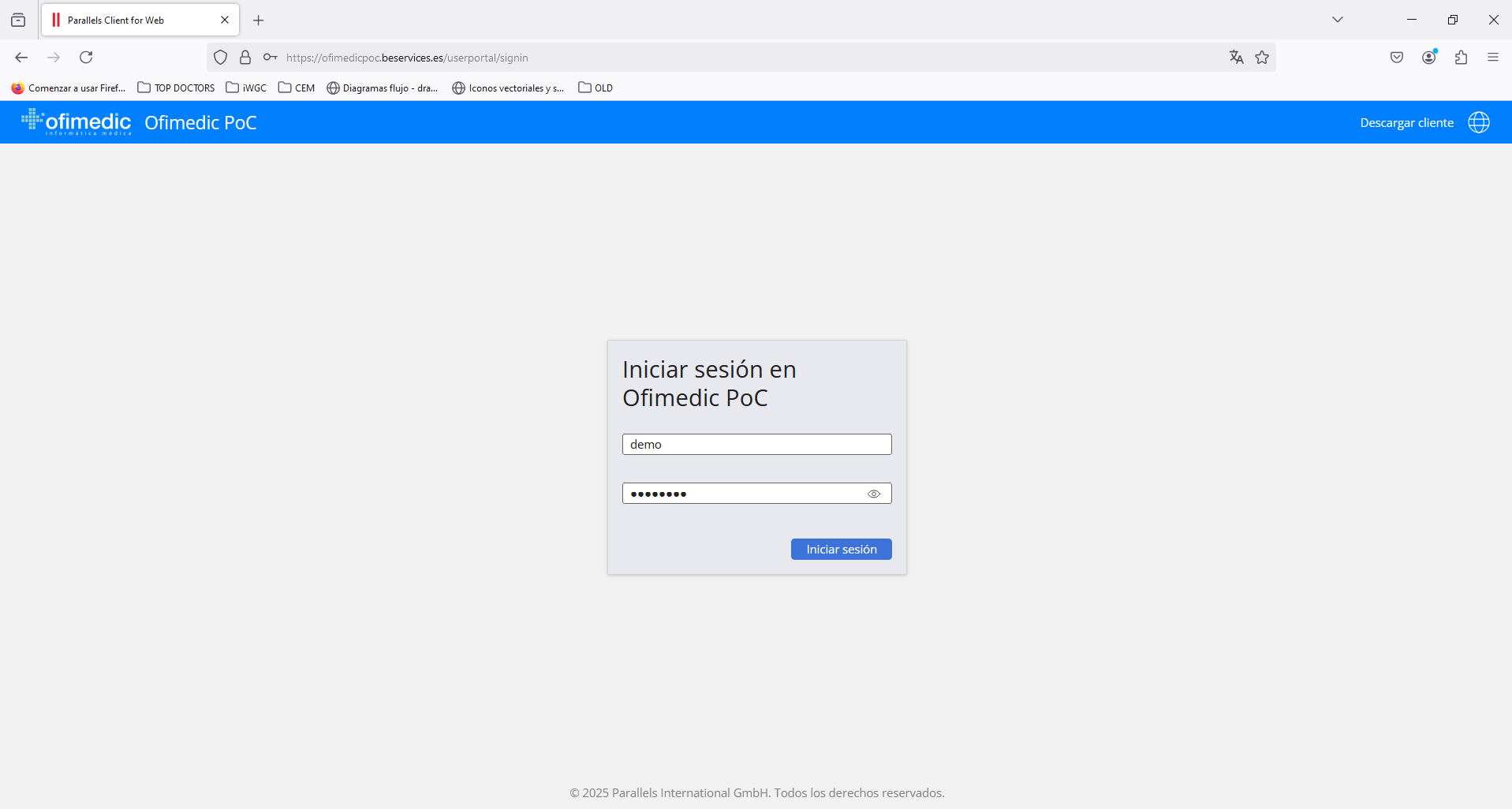Accederemos a https://cloud.ofimedic.com con las credenciales de usuario de Ofimedic.