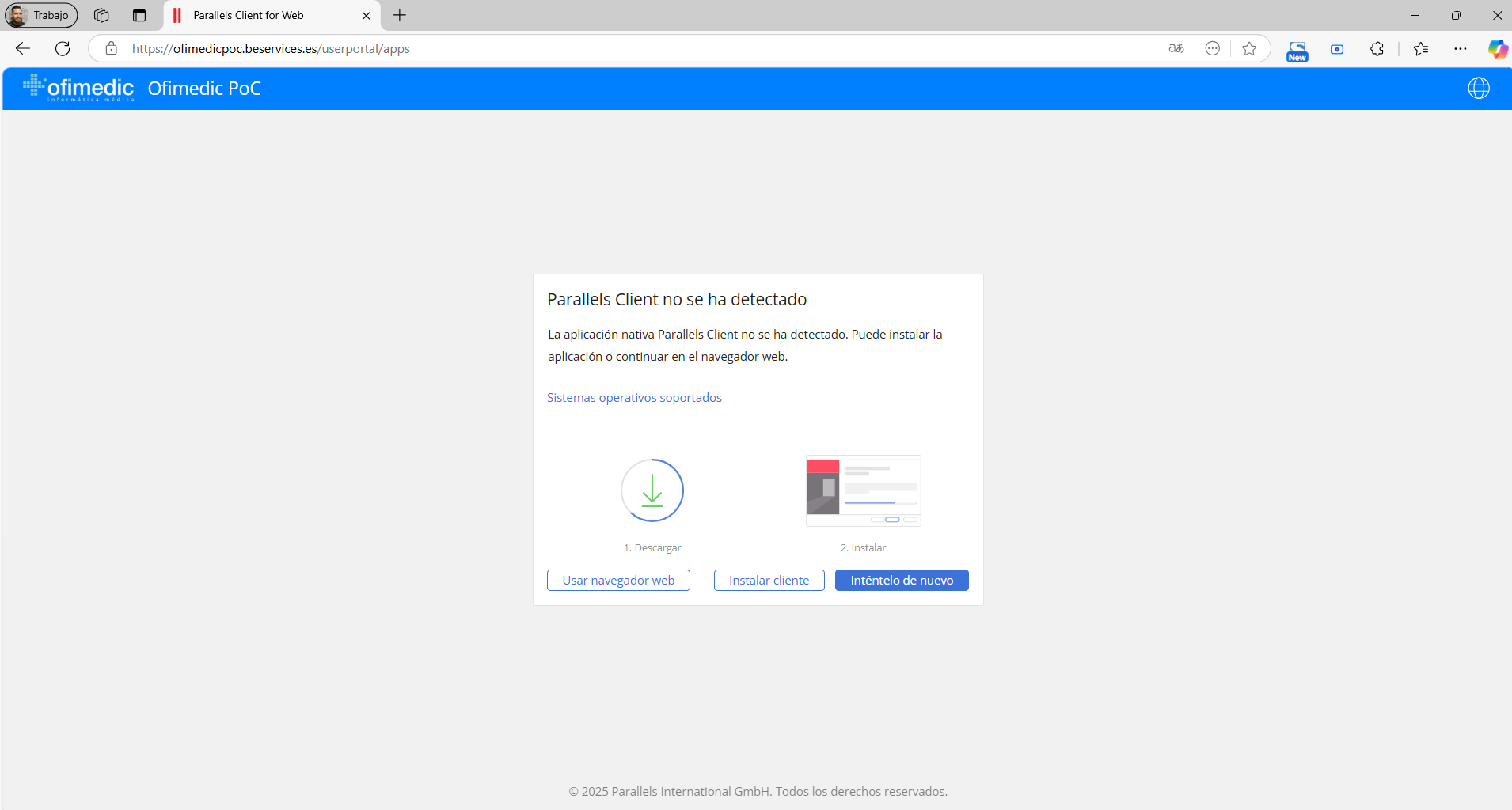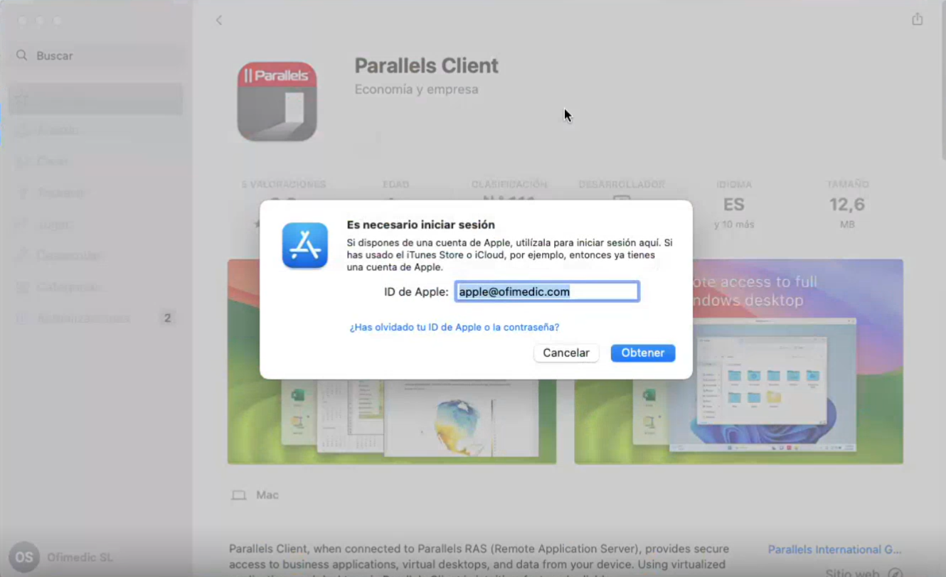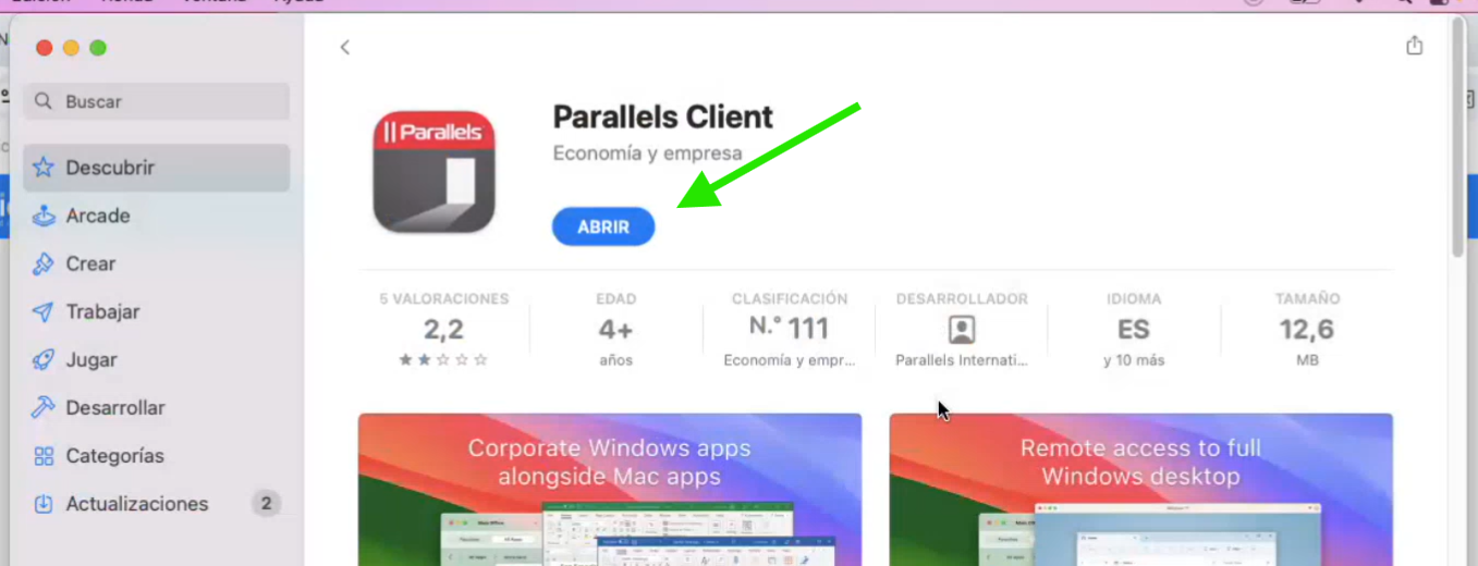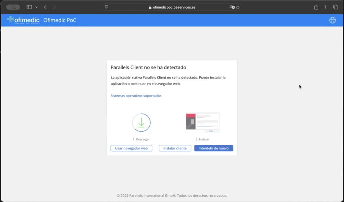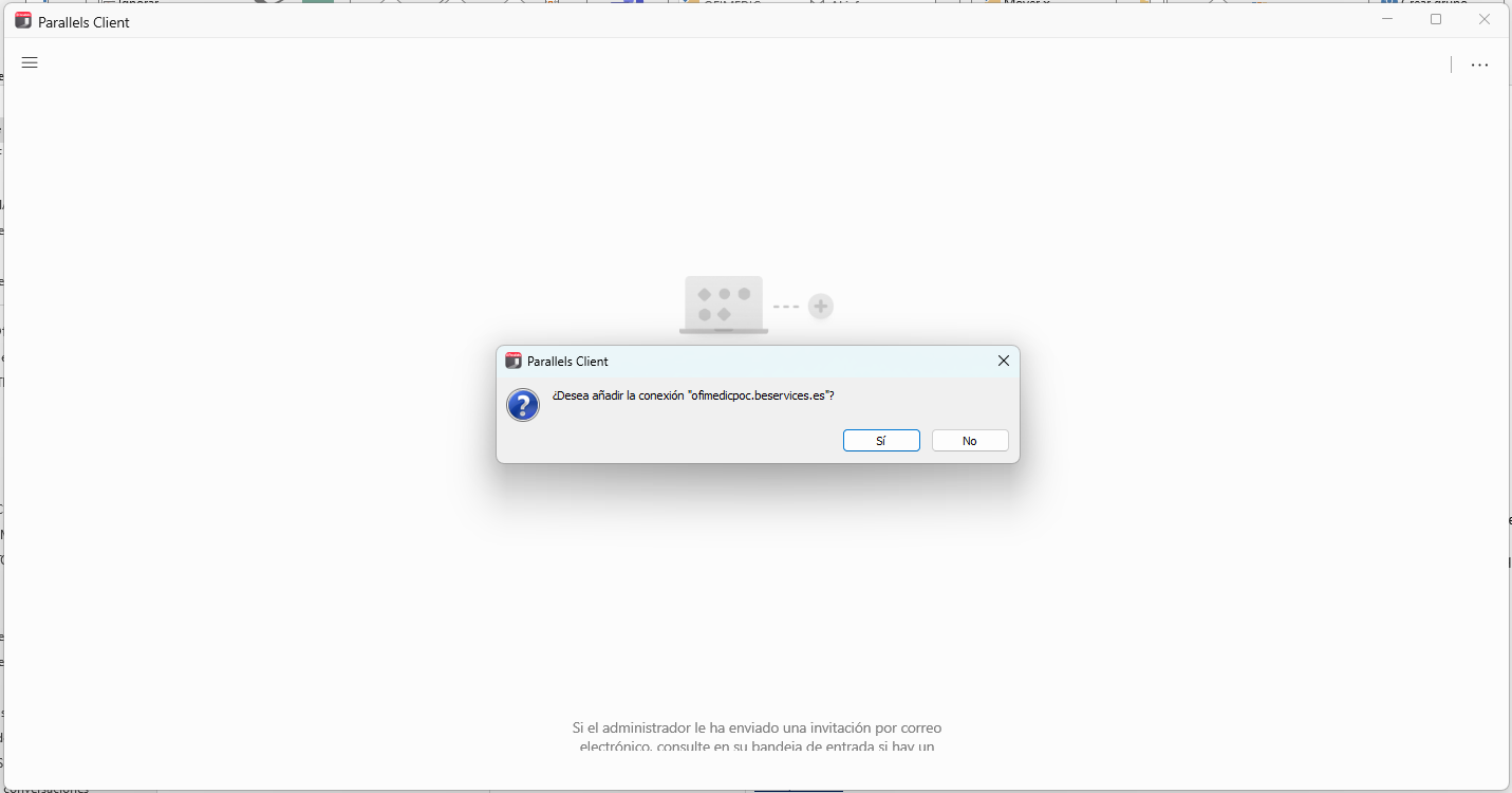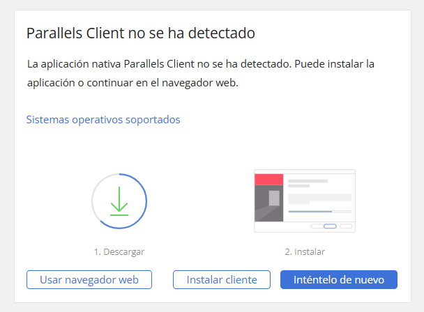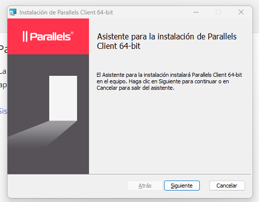 Si es la primera vez que se conecta, o no ha instalado previamente Parallels, aparecerá la siguiente pantalla: