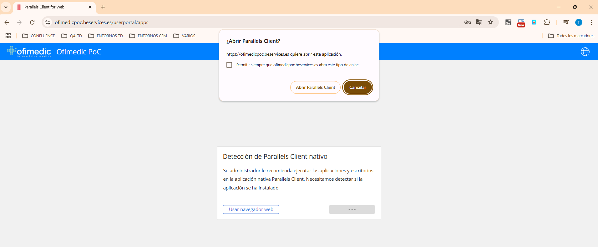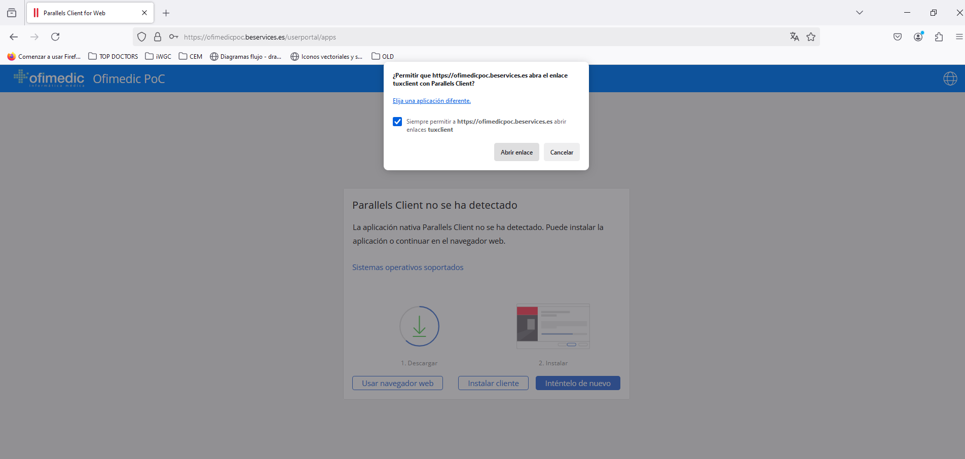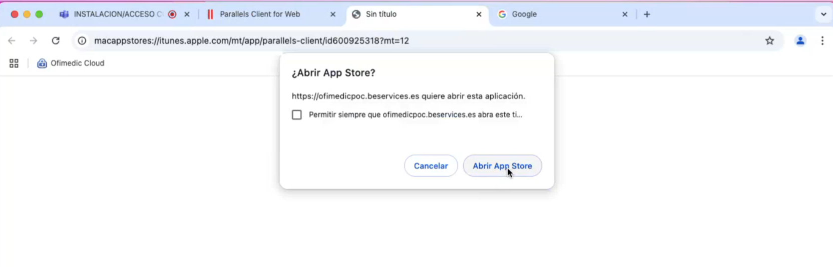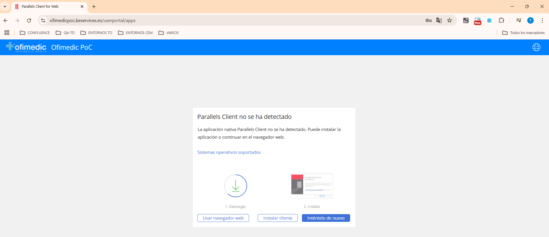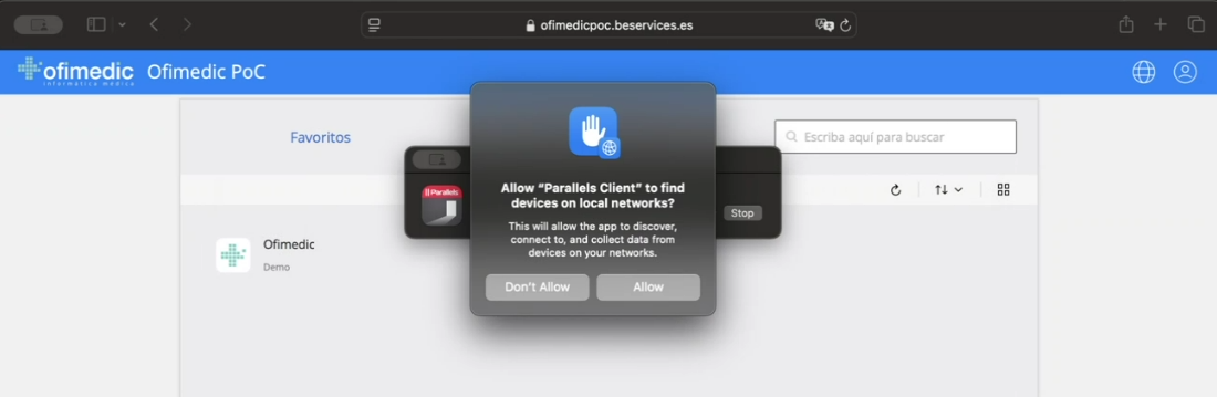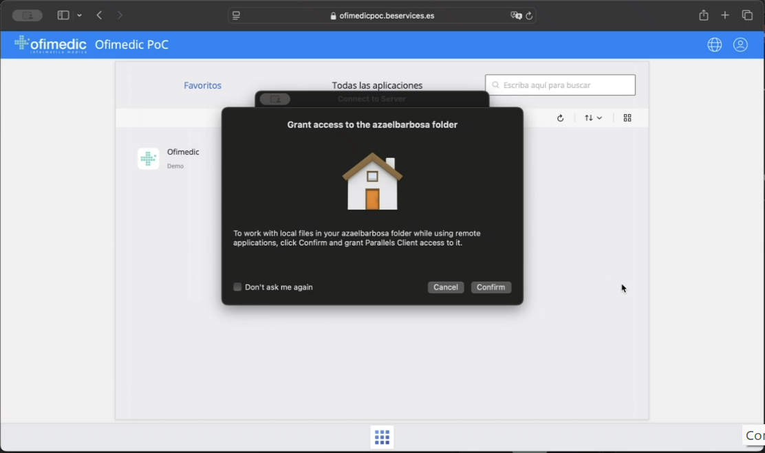 Si es la primera vez que se conecta, o no ha instalado previamente Parallels, aparecerá la siguiente pantalla: