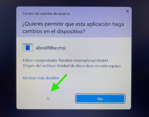 Durante la instalación, tendrá que permitir que la aplicación pueda hacer cambios en el dispositivo, haciendo click en ‘Si’.