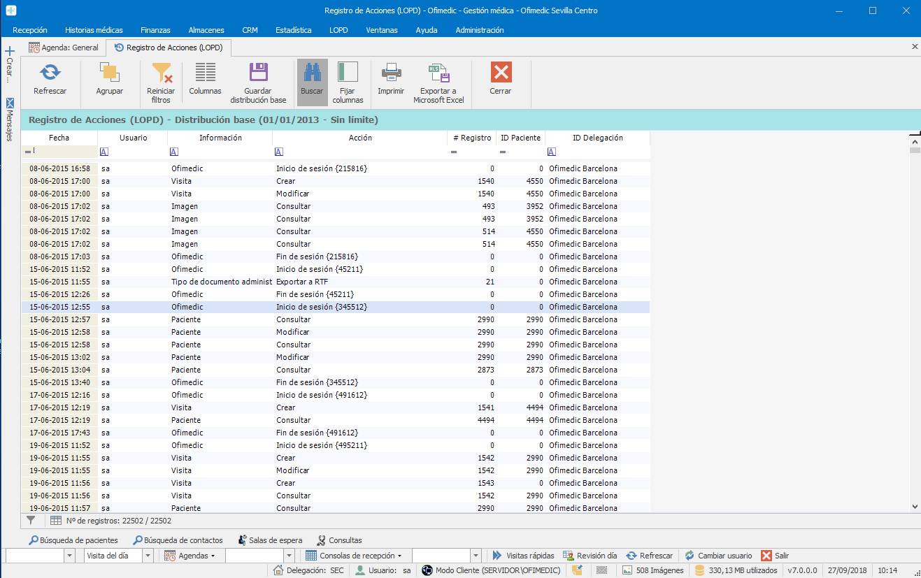 - Registro automático de exportaciones de datos (solo permitidas para administradores).