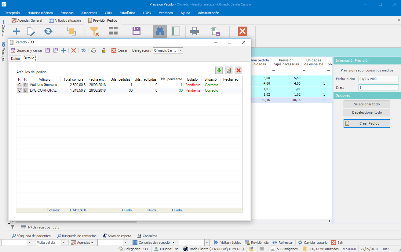 Ofimedic Stock y Pedidos